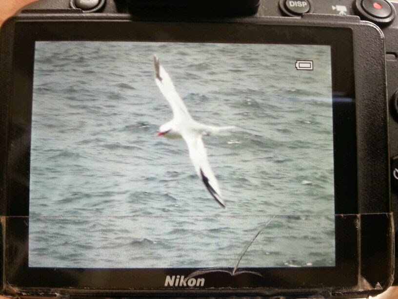 Ellers så vi nogle flotte Brown Booby (brun sule) og så hvid og mørk fase af Red-footed Booby (Rødfodet sule) og jeg spottede meget kortvarrigt, hvad der sandsynligvis var fire delfiner ude i havet. Der dukkede en tropikfugle mere op, og den havde et par rigtig lange forlængede halefjer, så det lykkedes at få ser hele to individer, af en af de fugle vi havde håbet på.