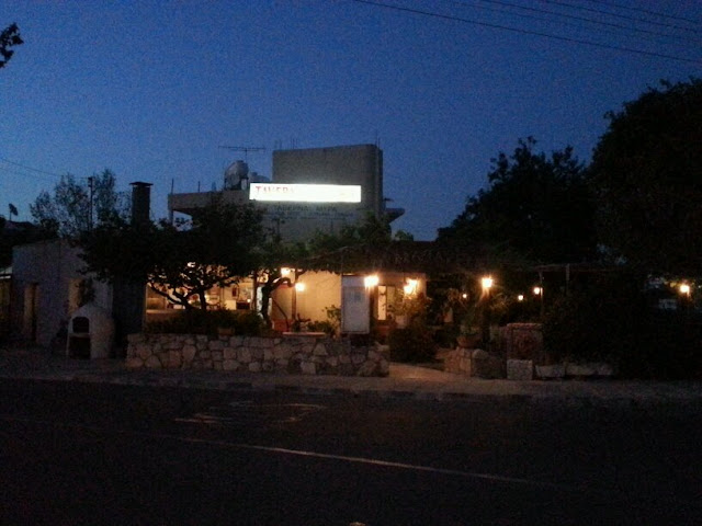 Nu nærmer vi os historien om den ærlige mand. Graham – skriveren på ringmærkningsarrangementet – fortalte en masse om det at bo på Cypern, hvilket han havde gjort siden 1986 og så gav han os et par tips til gode spisesteder, hvis man virkelig ville opleve ægte lokal mad og kultur og ikke turistudgaverne. Det ene sed var kun få kilometer væk i Polis og et godt at få lunch. Stedet lå lige et starten af byen og kunne kendes på de to grønne døre og så var det en rigtig ‘mama’, der lavede maden. Og så brugte Graham meget lang tid på at udpege på vores kort et godt aftenspisested i Paphos, hvor han selv kom ugentlig. Det hed Myrra og var et familieforetagende og de producerede vin og serverede derfor kun to slags – enten rød eller hvid, af deres egen. Så lavde de også ost og serverede den bedste ‘meze’.